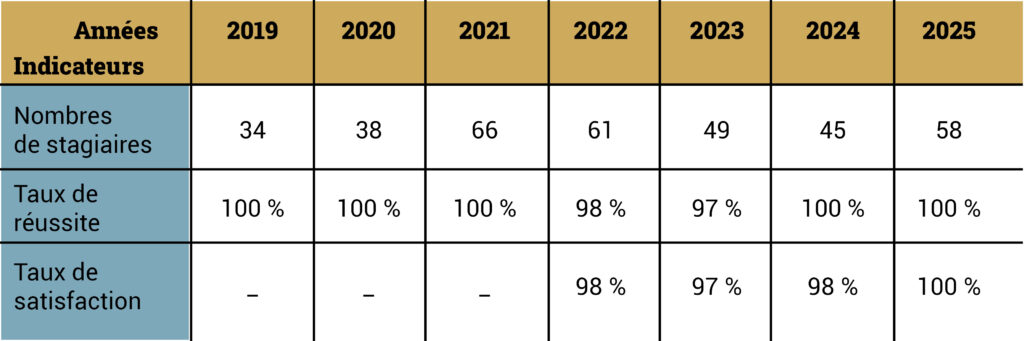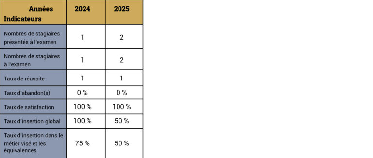 Statistiques : pour information, statistiques non disponibles car les débouchés professionnels de la formation ne sont pas entièrement couverts sur le siteInserJeunes