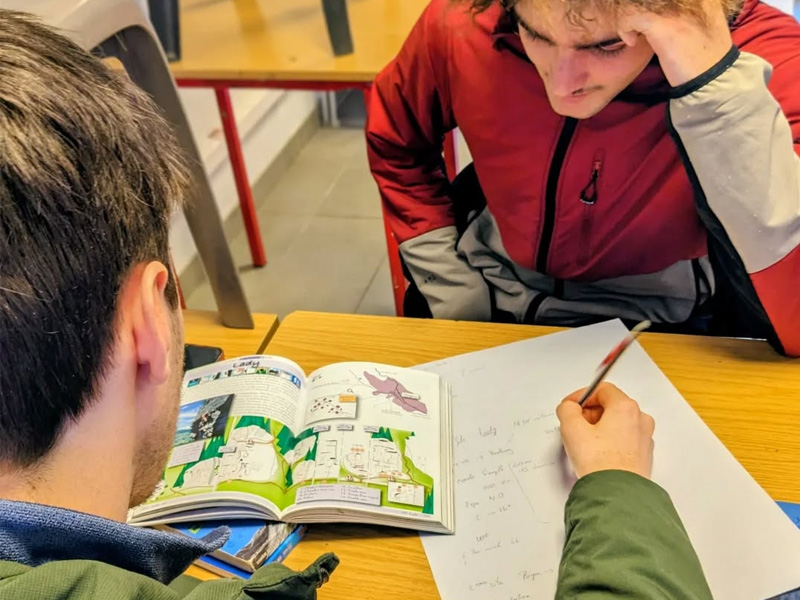 La place de la théorie n’a pas été oubliée. Dans le cadre de la semaine « Préparation aux stages ski », les élèves de 2nde pro ont bénéficié de l’intervention de Joss, du magasin Versant Nord. Ils ont pu découvrir le matériel de ski de randonnée et être sensibilisés aux enjeux de la sécurité en montagne, des notions indispensables pour évoluer en milieu hivernal.